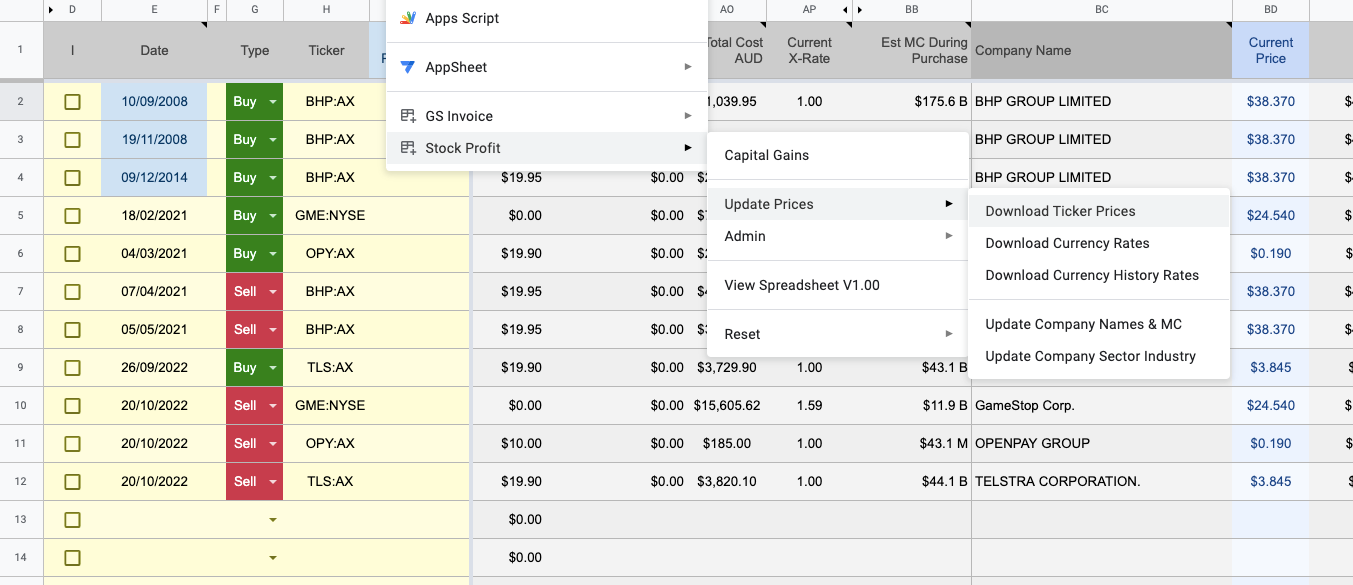 Share Tracking Spreadsheet for Australian Investors