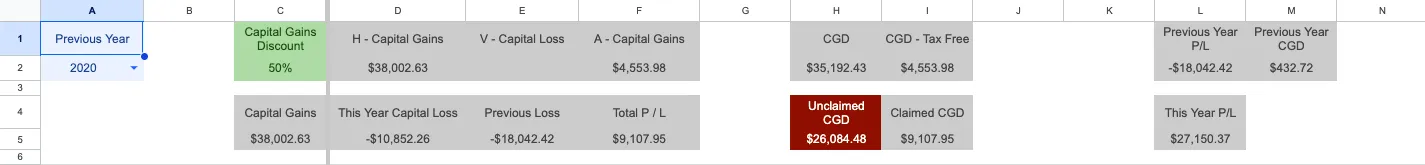 In our CGT Report, Unclaimed CGD (Capital Gains Discount) appears when losses are used to offset your profits. In these cases, the capital gains discount can’t be applied, so the unclaimed amount is highlighted in red on the spreadsheet.